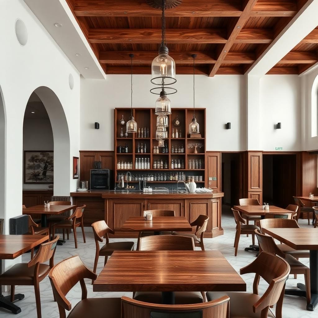 Quán cafe tối giản (Minimalist): tông màu trung tính, đường nét gọn gàng, tinh tế.