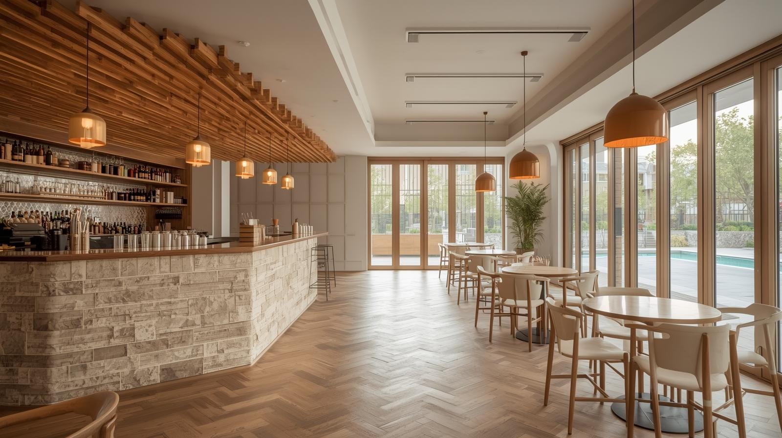 2. Ưu tiên hạng mục quan trọng: quầy pha chế, bàn ghế, ánh sáng.