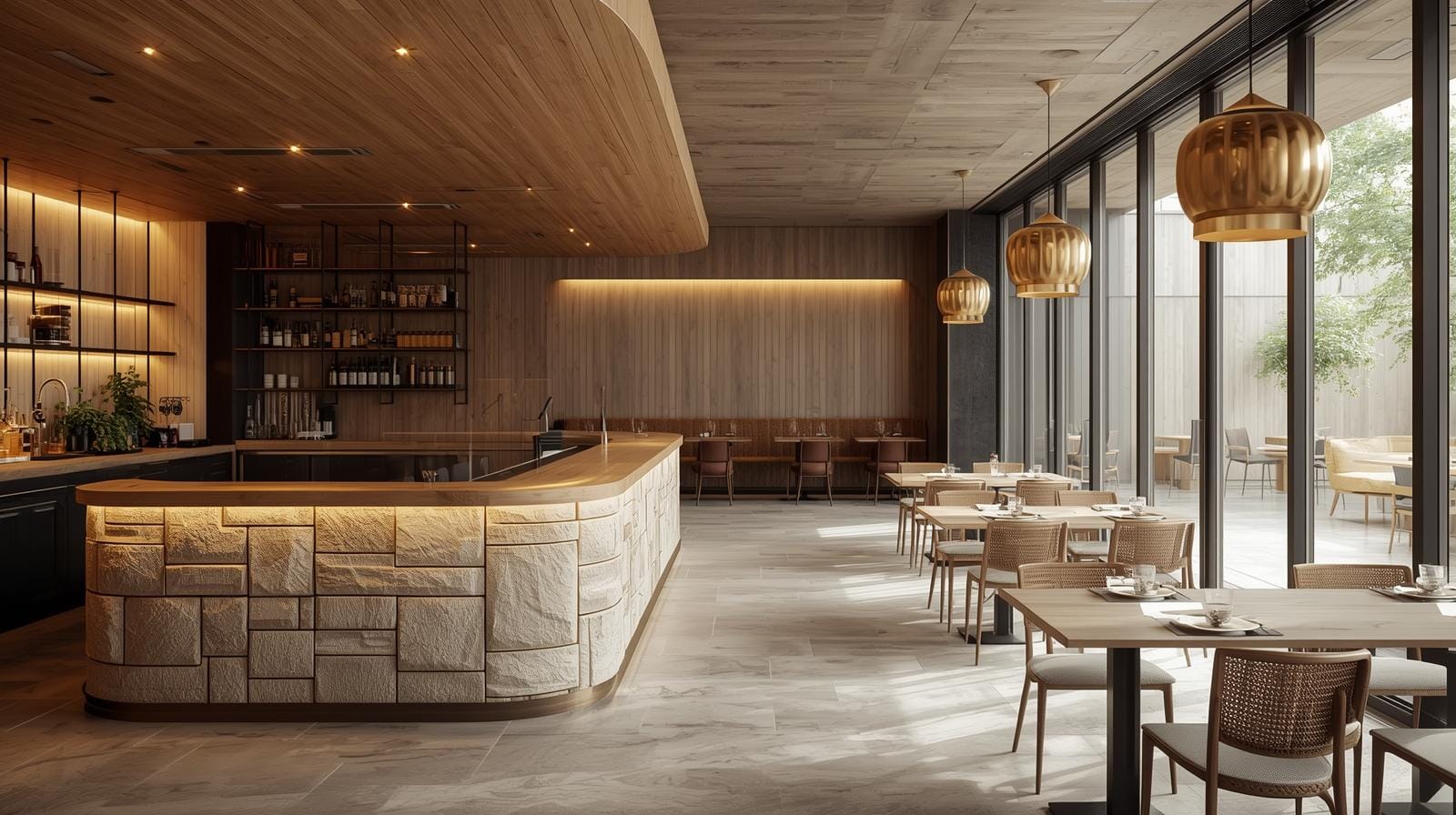 • Quầy bar – pha chế trung tâm, dễ phục vụ.